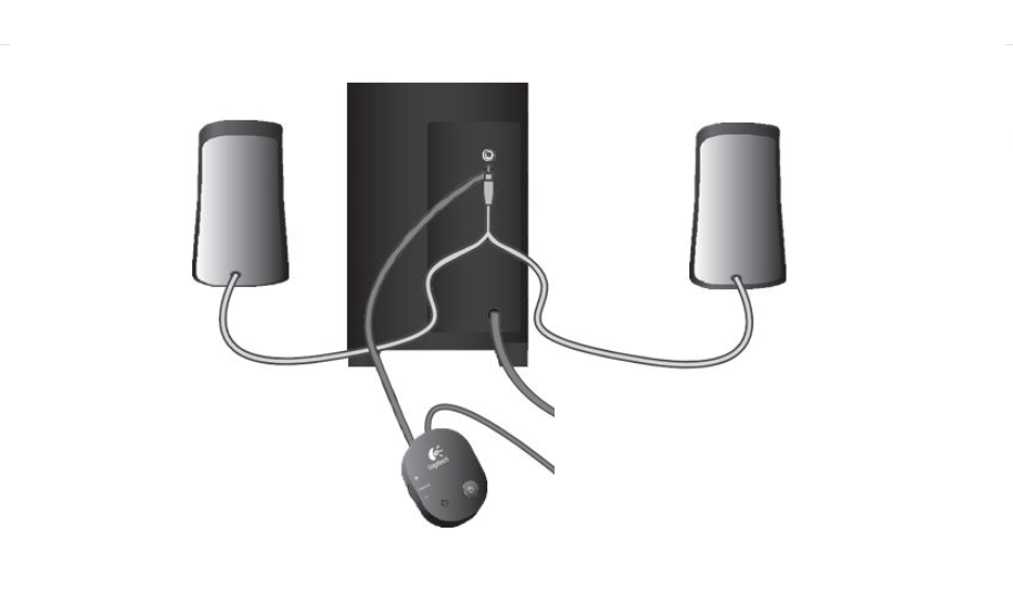サブウーファー、サテライト、およびコントロール ポッドを集めます。 両方のスピーカーをサブウーファーに接続します。 3.5 mm ジャックを PC のライン出力ポートに差し込みます。 Windows のオーディオ設定を正しく構成します。 クリアなサウンドが得られるようにサブウーファーとサテライトを配置します。