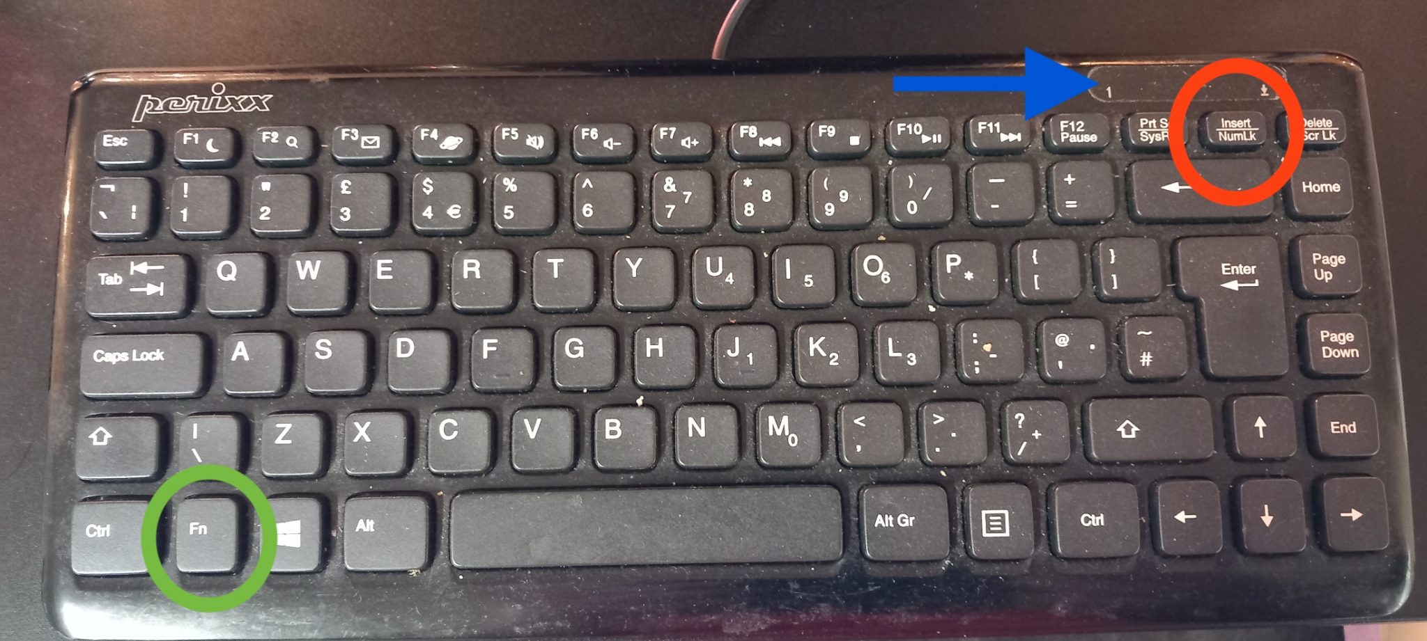 Num Lock が無効になっています。ラップトップの Num Lock キーまたは Fn ショートカットを使用して、Num Lock キーをオンにします。
