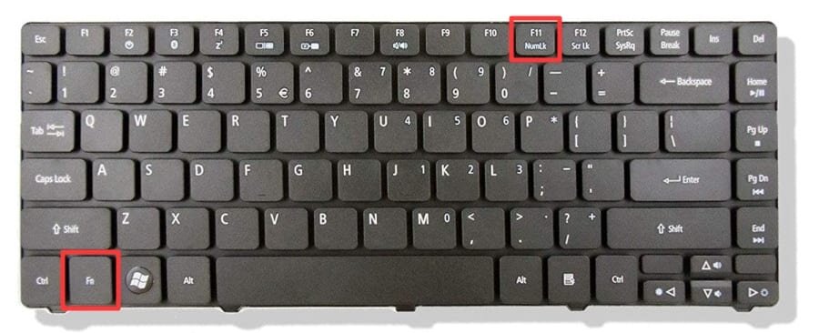 ラップトップに埋め込みキーパッドが使用されている場合、メーカーによっては、Num Lock 機能が Fn + F11 または Fn + F12 の後ろに隠れることがよくあります。 ハードウェア キーが不明瞭な場合は、オペレーティング システムのオンスクリーン キーボードを使用して、Num Lock の状態を確認します。