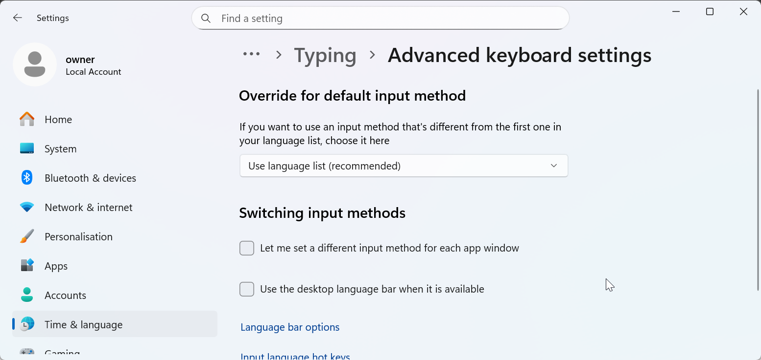 Windows では、[時間と言語] の [設定] でレイアウトを追加できます。 macOS では、システム設定のキーボードの下にレイアウト コントロールが配置されており、レイアウトを切り替えるショートカットを有効にすることができます。