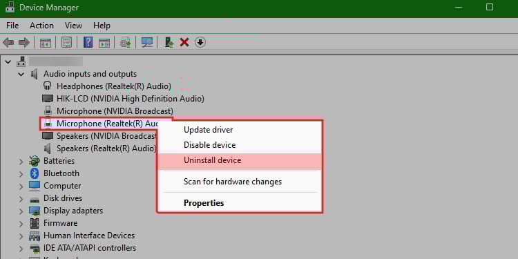 利用可能なアップデートがない場合、またはアップデートが機能しない場合は、ドライバーを再インストールして、ドライバーの破損によるマイクのミュートの問題を修正してください。