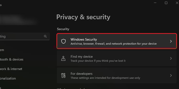 に移動>プライバシーとセキュリティ、Windows セキュリティへ。