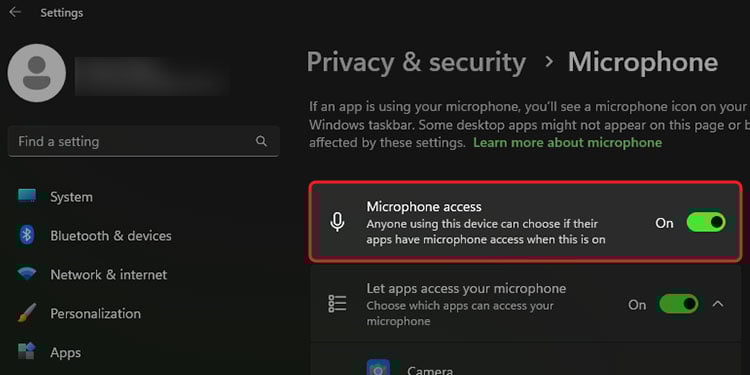 Windows では、入力デバイスの処理に必要なパーミッションを管理できます。マイクは 1 つなので、アプリケーションごとに有効または無効にすることができます。設定からクイック チェックを実行し、使用しているアプリケーションのマイク権限を有効にすることができます。