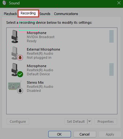 Levels タブに移動し、音量アイコンに赤い無効記号が付いている場合は、音量アイコンをクリックして削除します。