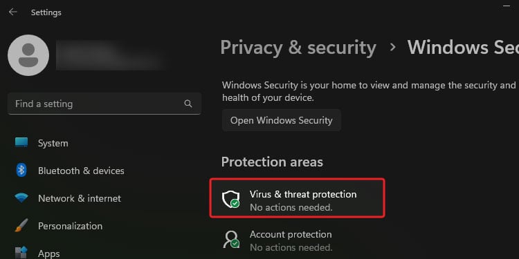 に移動>プライバシーとセキュリティ、Windows セキュリティへ。