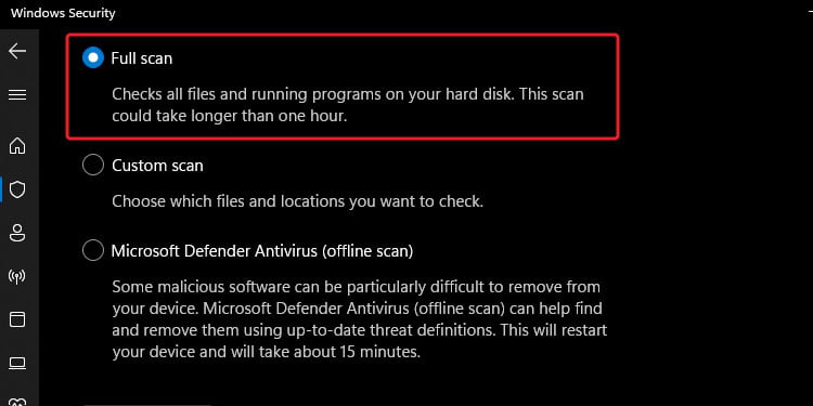 [フル スキャン] を選択し、[今すぐスキャン] ボタンをクリックします。