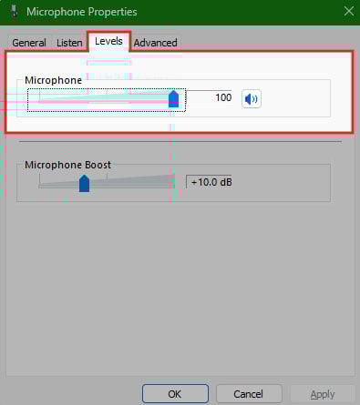 Levels タブに移動し、音量アイコンに赤い無効記号が付いている場合は、音量アイコンをクリックして削除します。