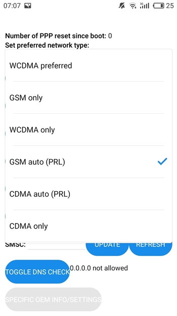 [優先ネットワークの種類を設定] ドロップダウン メニューが表示されるまで下にスクロールします。分かりにくいので、右側の小さな矢印を探してください。リストから「GSM Auto (PRL)」を選択してください。