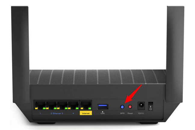 次に、ワイヤレス ルーター、メッシュ Wi-Fi、またはアクセス ポイントまで歩いていきます。その上で、WPS ボタンを見つけて数秒間押します。通常、背面、側面、または底面にあります。