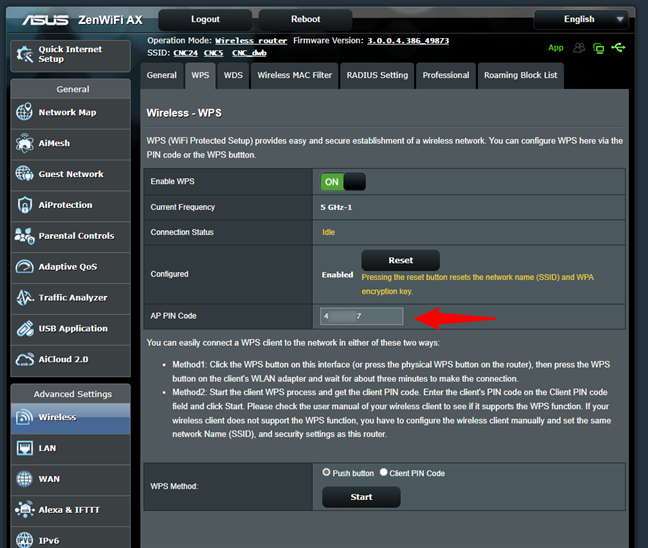 ASUS メッシュ Wi-Fi の WPS PIN コード