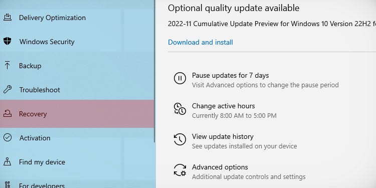 このボタンが表示されない場合は、完全に再インストールしない限り、オペレーティング システムを以前のバージョンに戻すことはできません。ただし、より長い期間、より多くのマイナー アップデートをアンインストールできる場合があります。