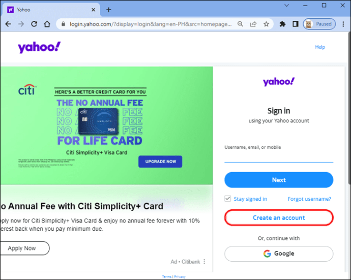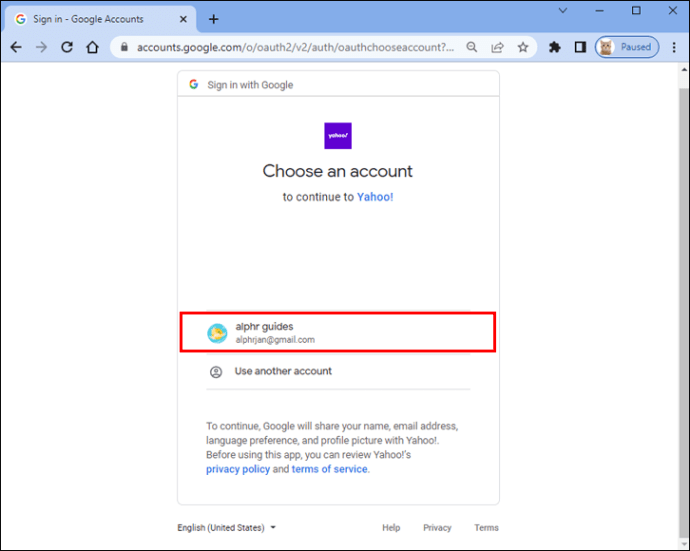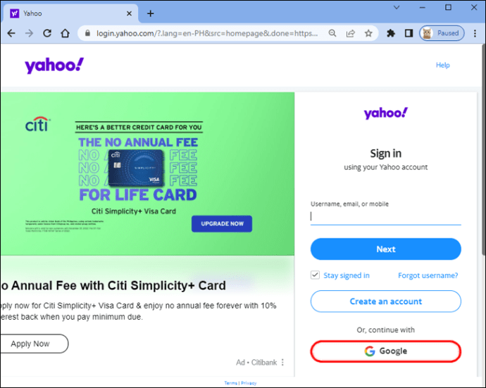 Google アカウントを持つユーザーは、電話番号の要件を満たさなくても Yahoo アカウントを作成できます。 Google では、多くの Web サイトや企業が、Google 資格情報を使用してユーザーを自動的にサインアップすることを許可しています。これにより、2 つのアカウントがリンクされ、セキュリティが強化され、パスワードが蓄積しすぎないようになります。