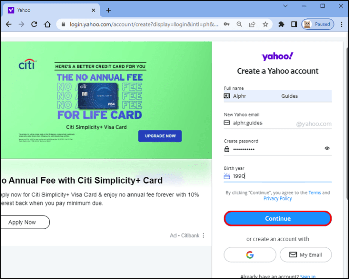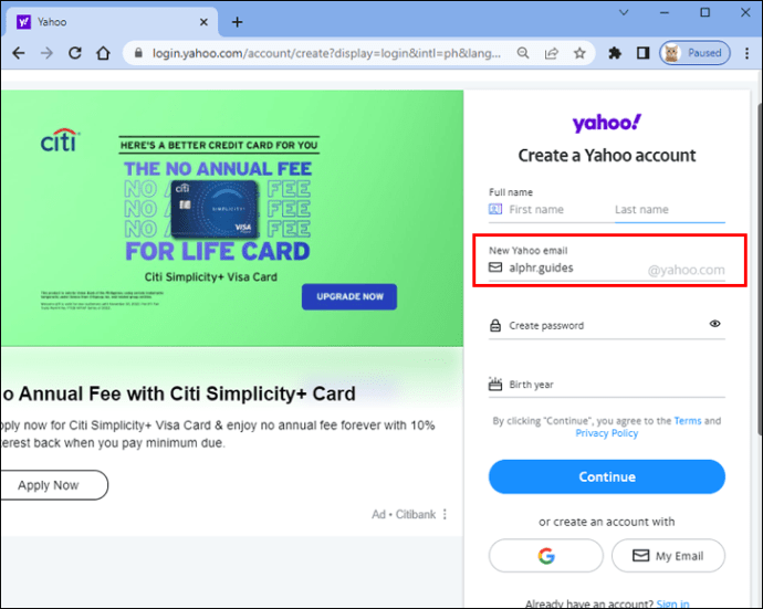 電話番号なしで Yahoo アカウントまたは電子メール アドレスを作成する方法