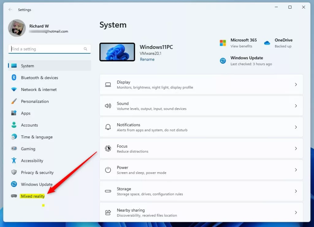 有効にしたらWindows 設定アプリを開くと、新しい Mixed Reality ボタンが表示されます。