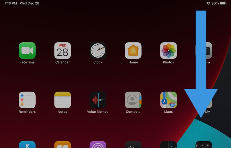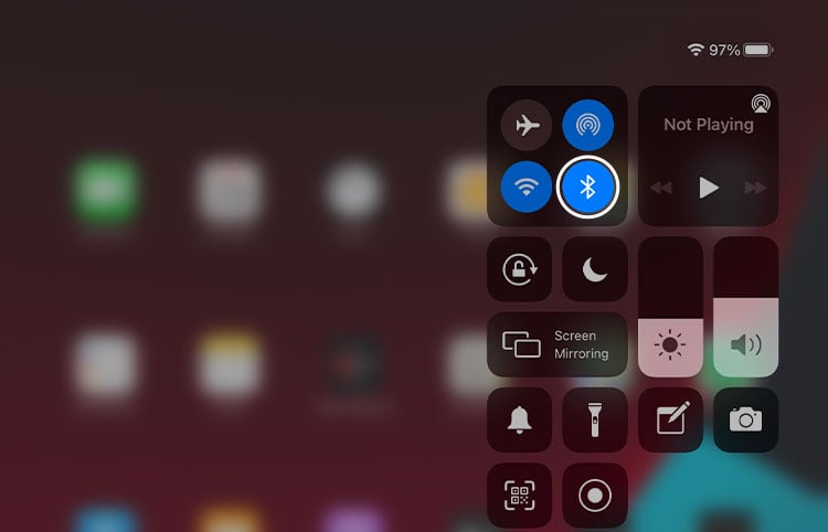 iPad の右上隅から下にスワイプして、コントロール センターを開きます。