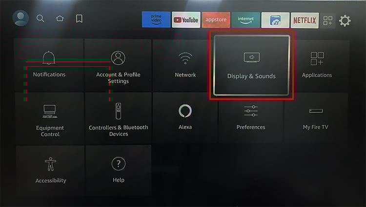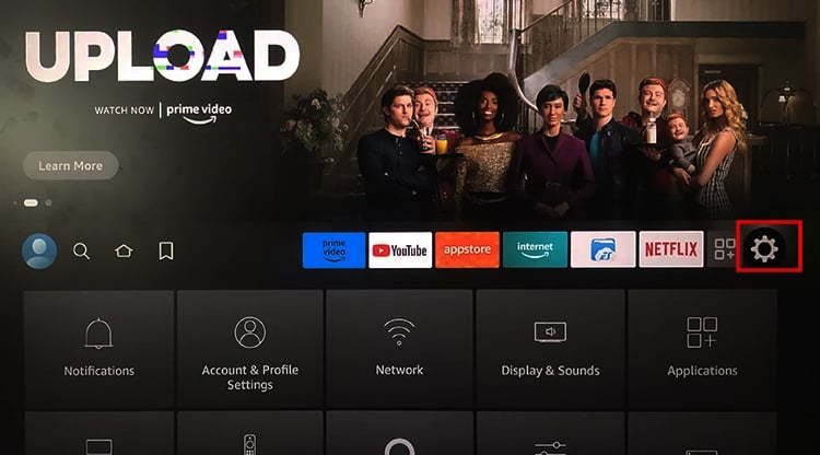 Firestick のホーム画面から、右上の歯車アイコンに移動します。