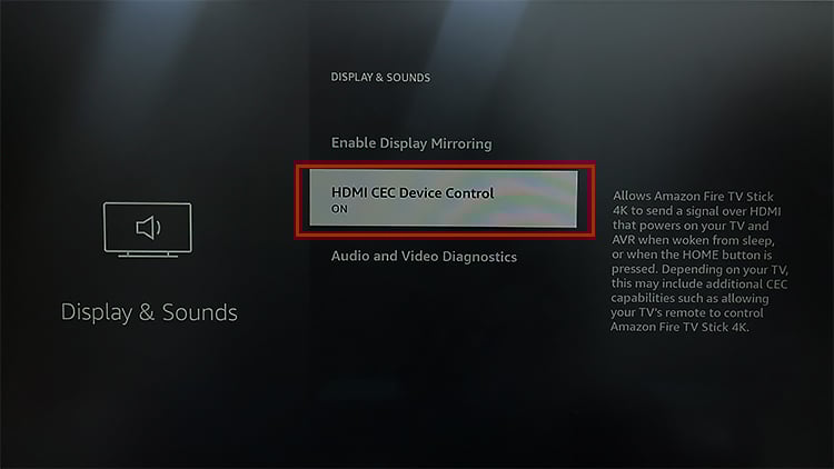 HDMI CEC は、同じ HDMI 接続で共有デバイスの共通機能を制御するのに役立つ機能です。簡単に言えば、この機能を有効にすると、Firestick リモコンを使用して電源や音量などの基本的なテレビ機能を制御したり、テレビのリモコンを使用して Fire TV スティックを制御したりできます。