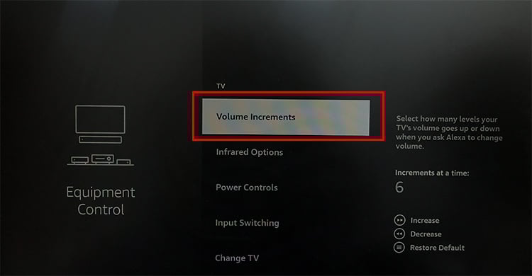 テレビの音量は、設定で設定された増分レベルに従って応答します。デフォルトでは、Firestick は音量レベルを 5 に設定します。満足できない場合は、設定から増減できます。
