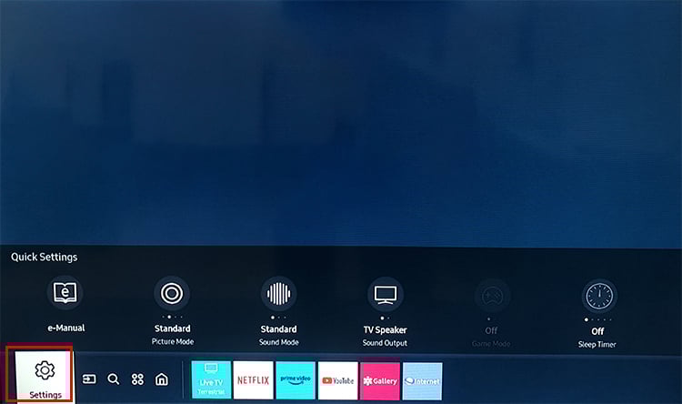 リモコンの ホーム ボタンを押します。 歯車アイコンをクリックして設定を開きます。