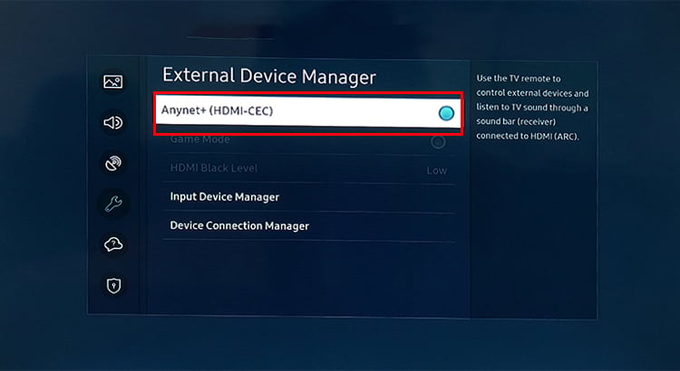 Anynet+ (HDMI-CEC)をクリックしてオンにします。