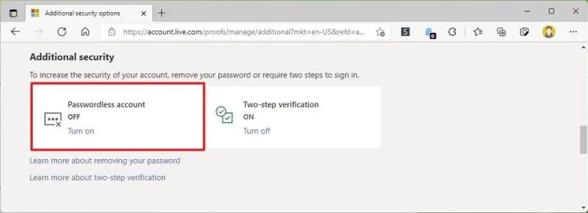 [追加のセキュリティ] セクションで、[パスワードなしのアカウント] オプションをオフにします。