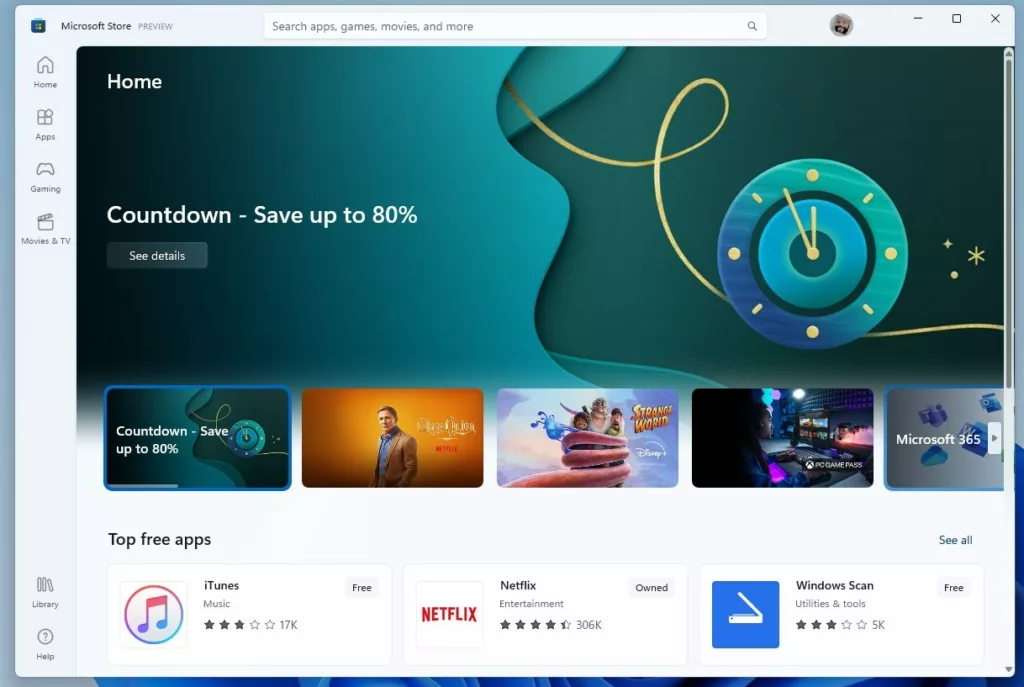 Microsoft Store アプリは、デフォルトで Windows 11 にインストールされています。何もする必要はありません。このアプリは現在、PC で最も使用されているアプリの 1 つであり、アプリ、ゲーム、映画のほか、Xbox Game Pass メンバー向けの映画の特別割引などの特別オファーを見つけてインストールするのに役立ちます。