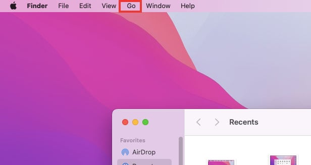 Finder を起動し、Go を選択します。次に、フォルダ に移動します。