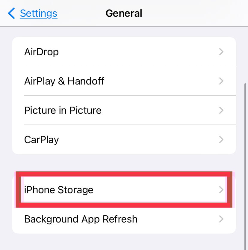 設定を開き、一般に移動します。 iPhone ストレージをタップします。