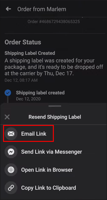 メール アカウントに移動します。Marketplace から、配送ラベルが記載されたリンクが記載されたメールが送信されます。メールに記載されているリンクをタップして、自宅のプリンターに送信します。