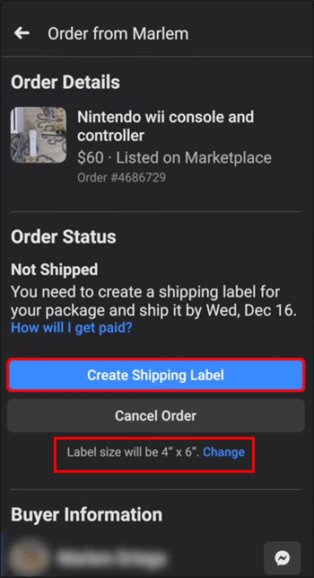 下[注文状況] で [配送ラベルを作成] をタップします。適切なラベル サイズ (「4 x 6」または「8.5 x 11」) を選択していることを確認してください。