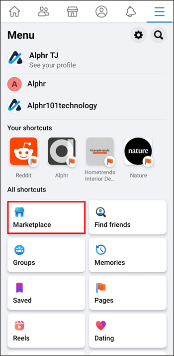 トップ メニューの [マーケットプレイス] アイコンをタップします。