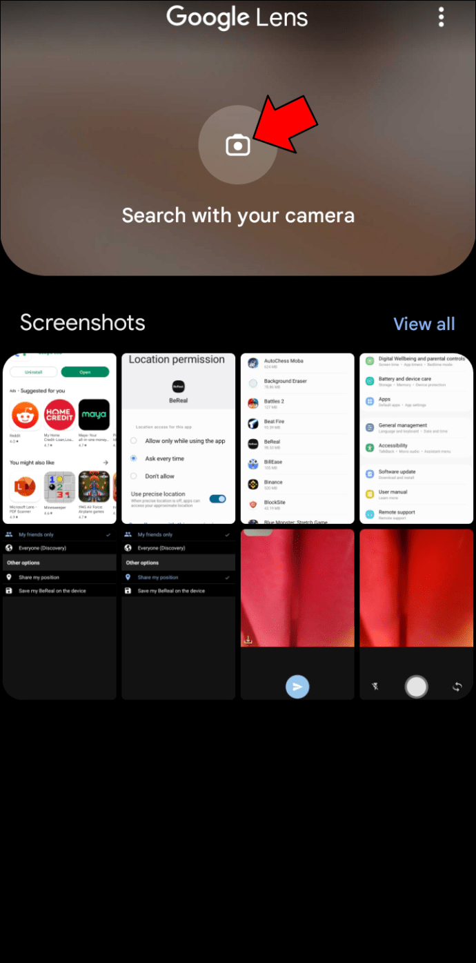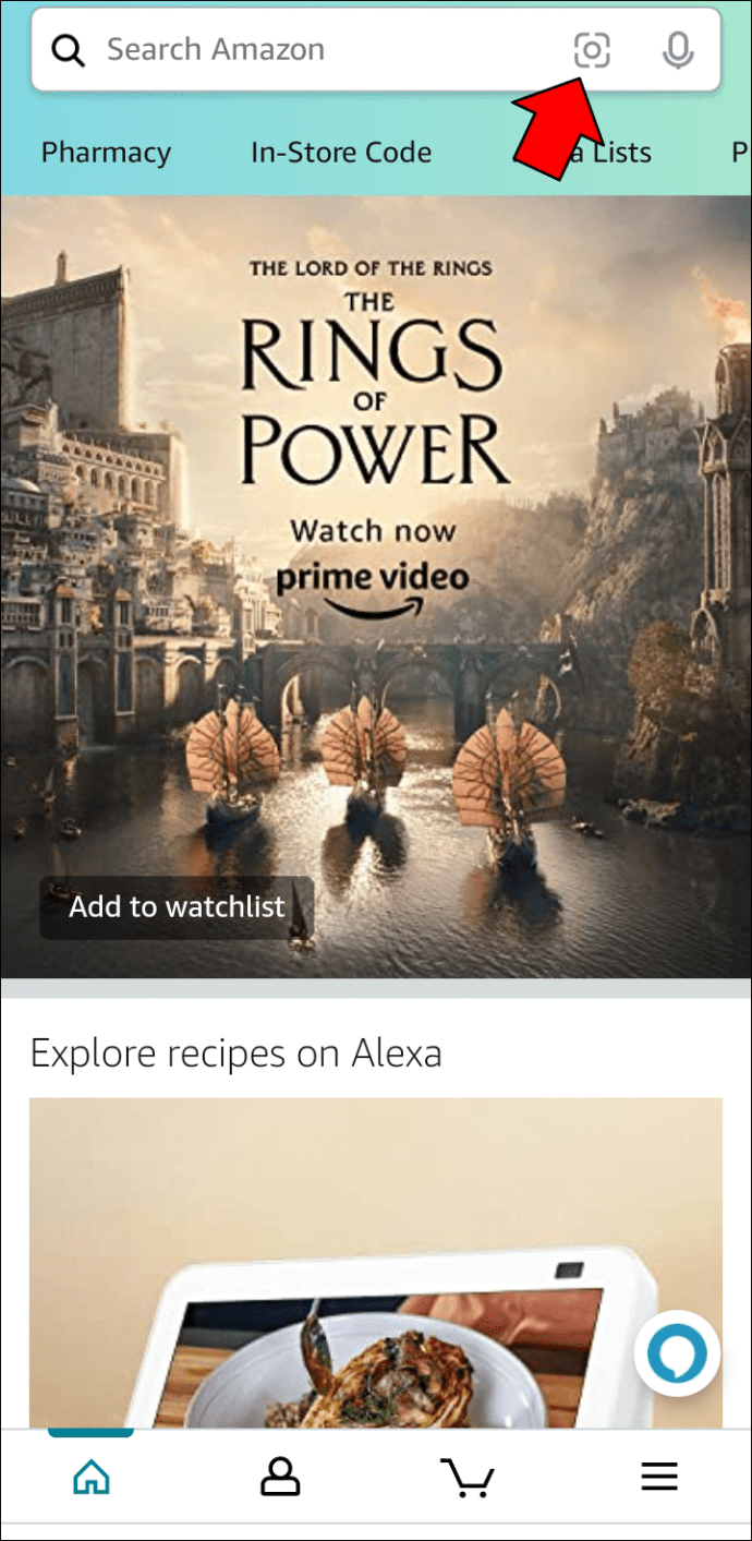 [カメラで検索] オプションの上にあるカメラ アイコンをタップします。