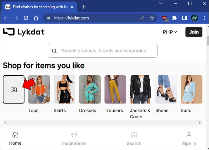 注意このツールは現在、特定の地域でのみ利用可能です。そのため、左下に StyleSnap オプションがない場合は、カメラを使用してアイテムを直接スキャンすることしかできません。