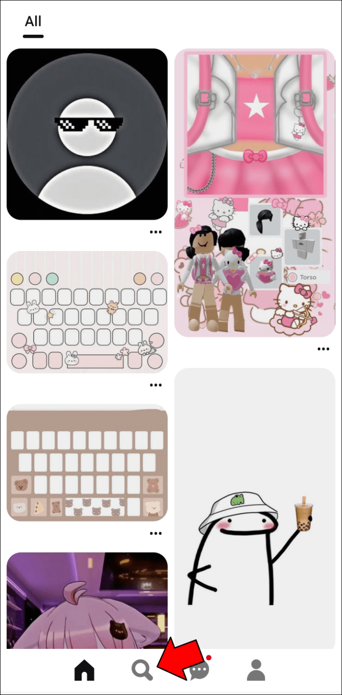 Pinterest 画面の下部にある拡大アイコンをタップします。