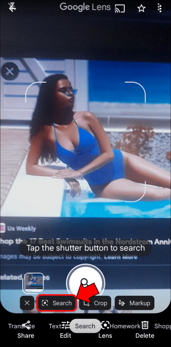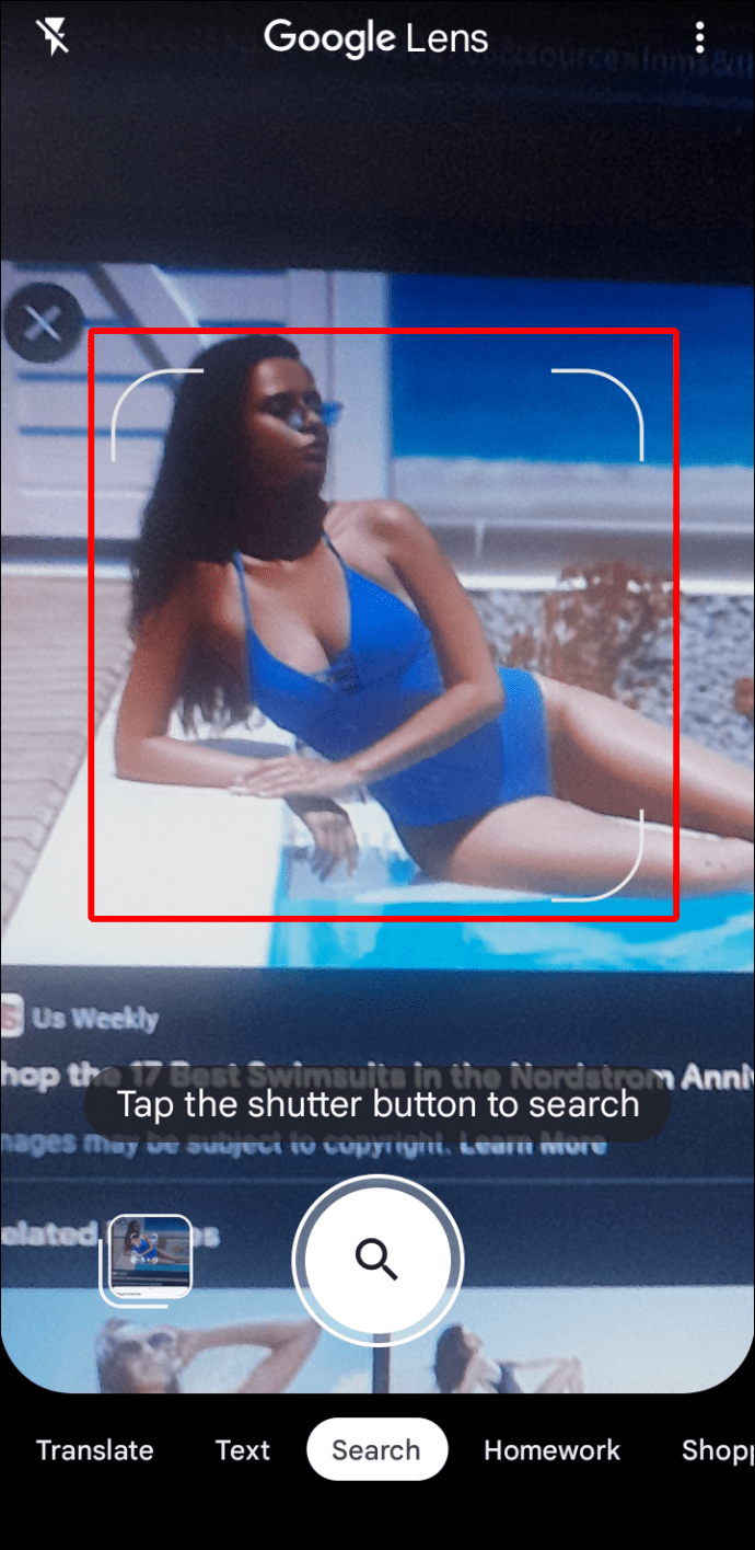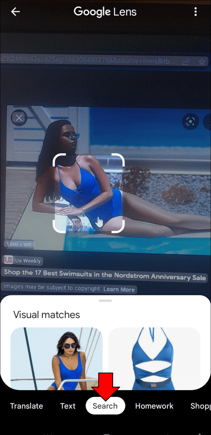ページを移動すると、ページの下部にある結果が更新されます。スライダー。ツールがオンラインで見つけられるように、あなたの写真がアイテムをはっきりと示していることを願っています。ドレスや水着を適切に分離しないと、Google レンズは写真内の各製品を個別に検出します。