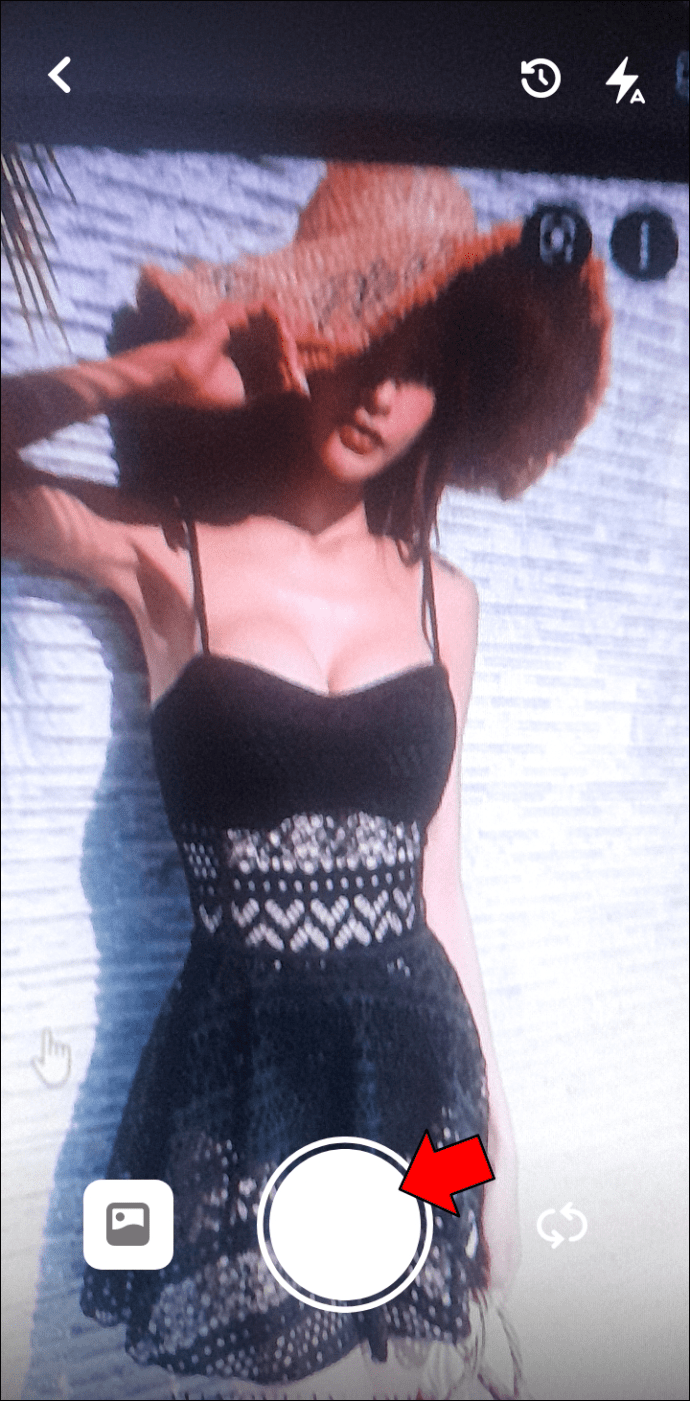 紫色の円をタップして、ドレスまたは水着の直接写真を撮ります