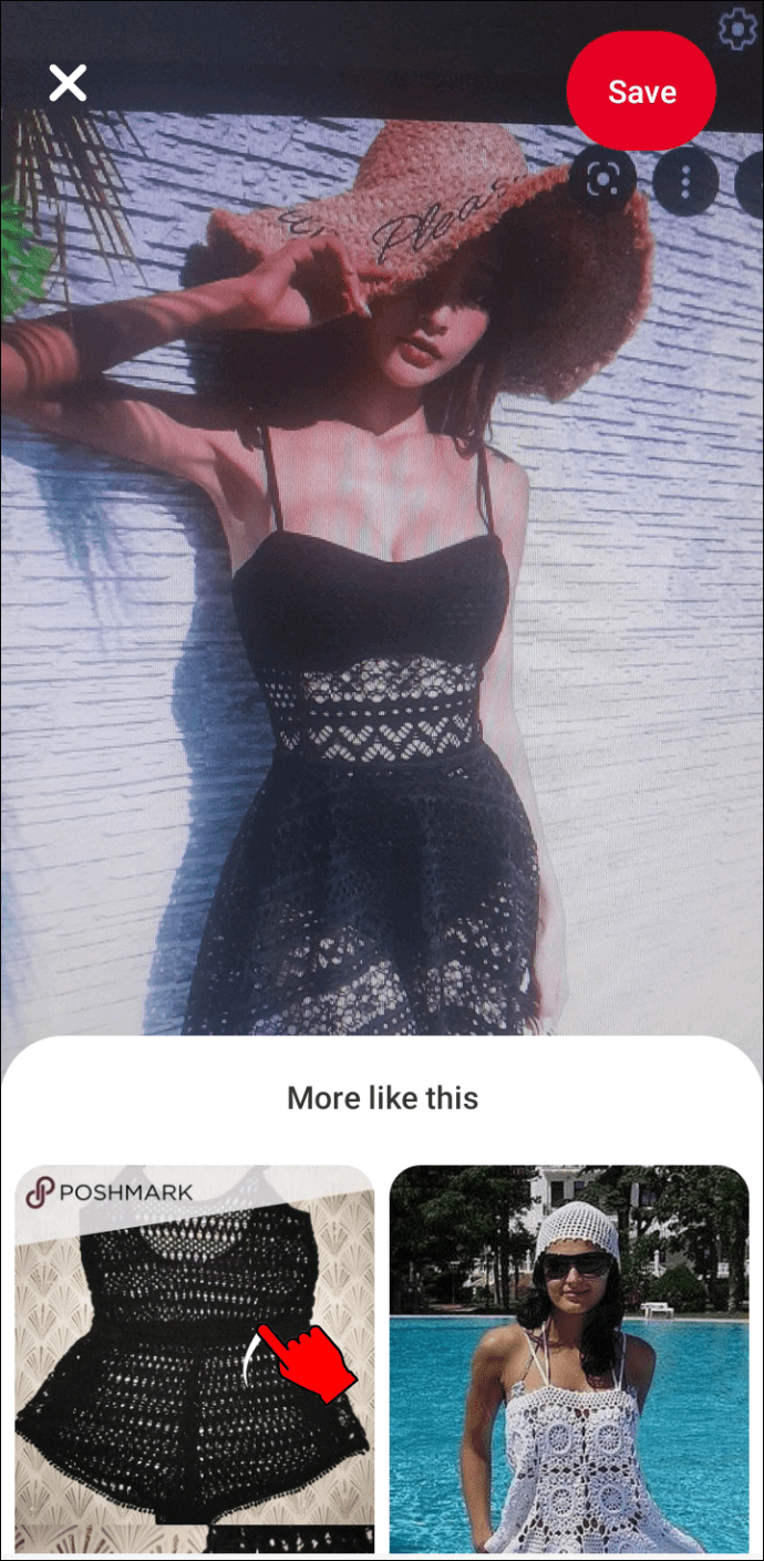 現在、Pinterest Lens は Android および iPhone モバイル アプリ。このツールは、通常は他の AI レンズを回避する、よりあいまいなアイテムを見つけるのに最適です。 Pinterest レンズを使用して写真からドレスや水着を見つける方法は次のとおりです。