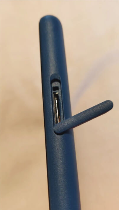 カードスロットを覆っているドアに先のとがった物体を挿入して、こじ開けます。これを行うには、爪、ナイフ、またはマイナス ドライバーを使用できます。ドア カバーがデバイスから完全に取り外されないことに注意することが重要です。代わりに、下にピボットします。