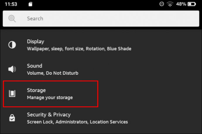 タブレットの設定に移動し、[ストレージ] をタップします。