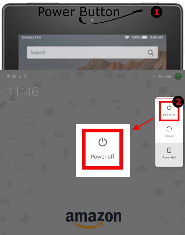 [電源/スリープ] ボタンを 2 秒間押し続け、[電源オフ] を選択して、タブレットの電源を切ります。