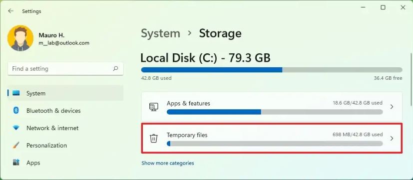簡単なヒント: [詳細オプションを表示] をクリックして [一時ファイル] 設定にアクセスし、さらにファイルをクリーンアップすることもできます。