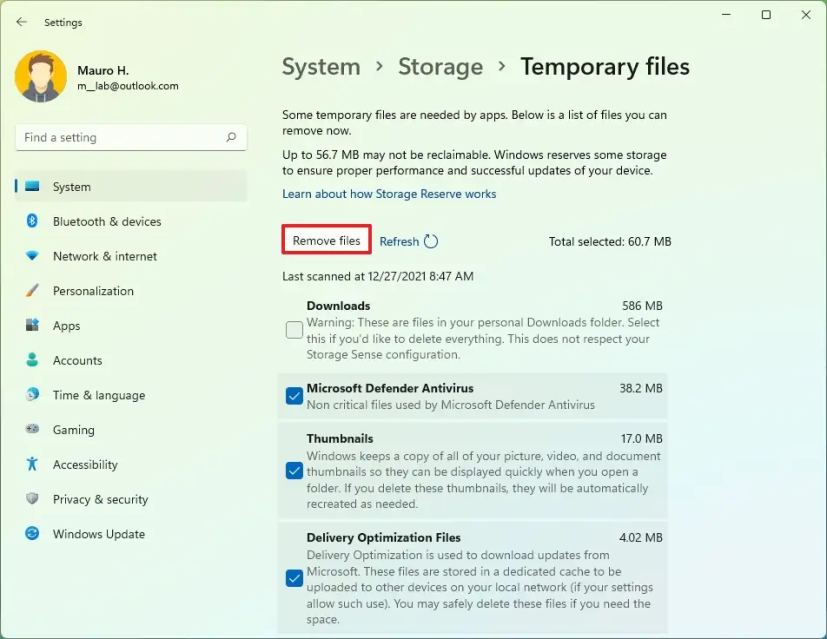 提案されたファイルを選択して、Windows 11 の記憶域を解放します。