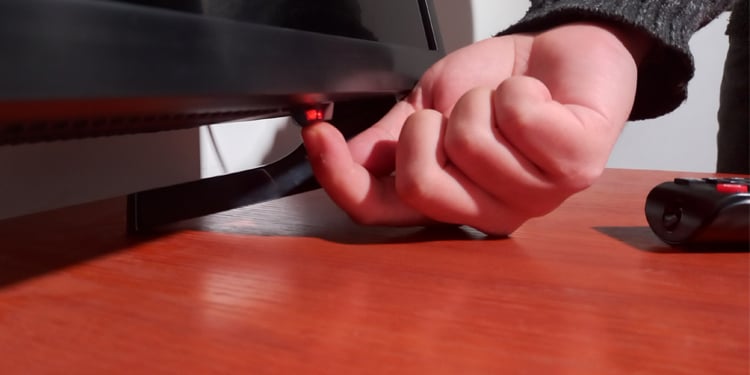 他のすべての接続を取り外して、テレビを分離します。 次に、テレビのボタンの電源ボタンを押しますパネルを数回繰り返して、テレビ回路から残留エネルギーを排出します。