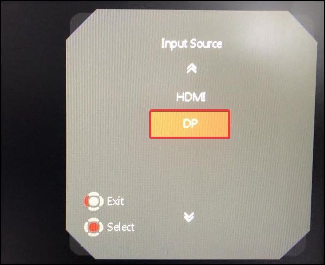 モニターの電源を入れます。モニターの側面または背面にあるメニュー ボタンを探します。入力ソースのメニューを見つけて選択します。 it. モニターをシステムに接続するために使用している正確な入力ソースを選択します。たとえば、DP 1 ポートを使用してモニターを接続した場合は、モニターの設定で同じものを選択します。