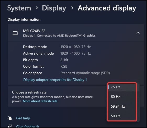 一部のユーザーは、ディスプレイのリフレッシュ レートを調整することで問題が解決したと報告しています。