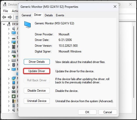 グラフィック ドライバを右クリックし、[プロパティ] を選択します。 ドライバーの更新 ボタンをクリックします。 [ドライバを自動検索] オプションを選択し、プロンプトに従います。 更新後にこの問題を解決するには、Rollback Driver ボタンをクリックしてください。同じプロセスに従って、モニタードライバーも更新します。