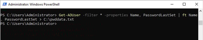 Get-ADUser-filter *-properties 名前、PasswordLastSet | ft Name, PasswordLastSet > C:\pwddata.txt