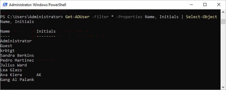 Get-ADUser-Filter *-Properties Name 、イニシャル | Select-Object 名、イニシャル