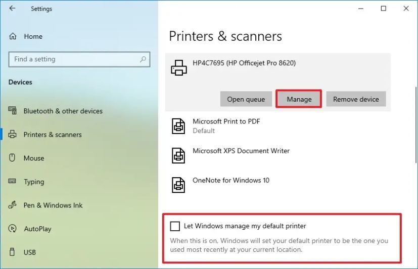 Windows 10 で既定のプリンターを変更するには、[設定] > [プリンターとスキャナー] を開き、[Windows で既定のプリンターを管理する] オプションをオフにします。プリンターを選択し、[管理] ボタンをクリックして、[デフォルトとして設定] ボタンをクリックします。