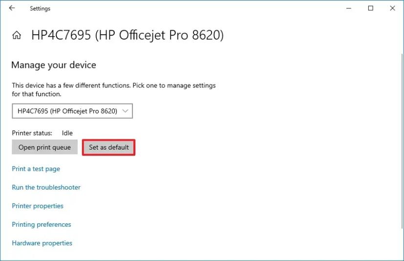 手順を完了すると、新しい p rinter が Windows 10 のデフォルトになります。